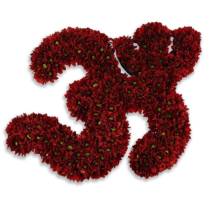 Honor a loved one's memory with our Red Om/Aum Hindu Tribute, thoughtfully handcrafted by Flowers New Cross in New Cross. This striking red floral tribute features fresh red (crimson) chrysanthemums, carefully arranged to form the sacred Om/Aum symbol, offering a meaningful and respectful gesture of condolence.